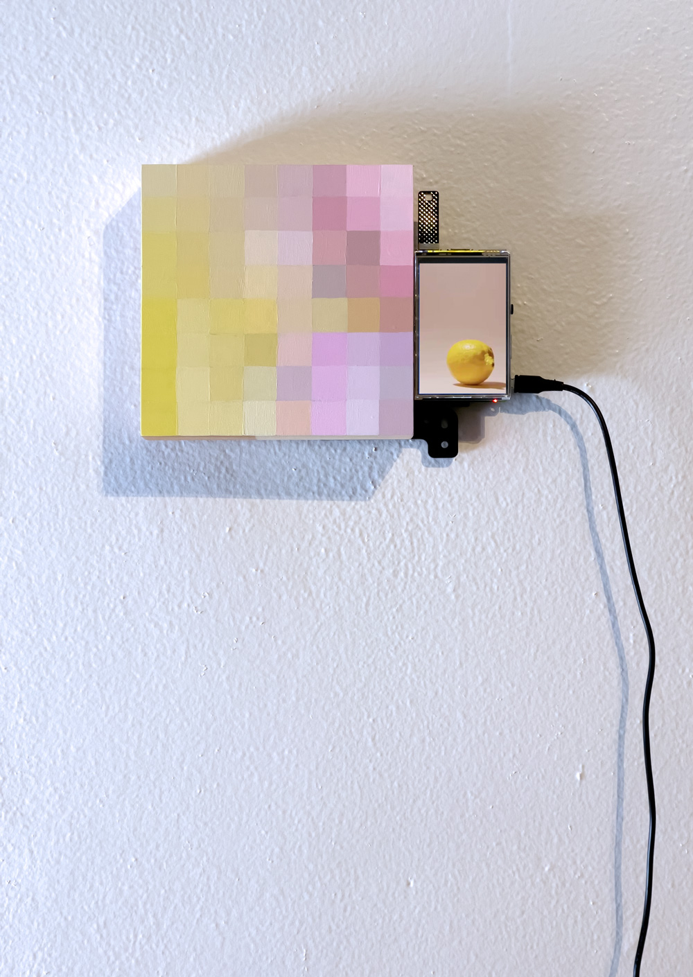 Acrylic on board, Raspberry Pi, 3.5in display, MP4 looped using a Unix shell scripting language, NFT 21 x 16cm | 8 x 6in |