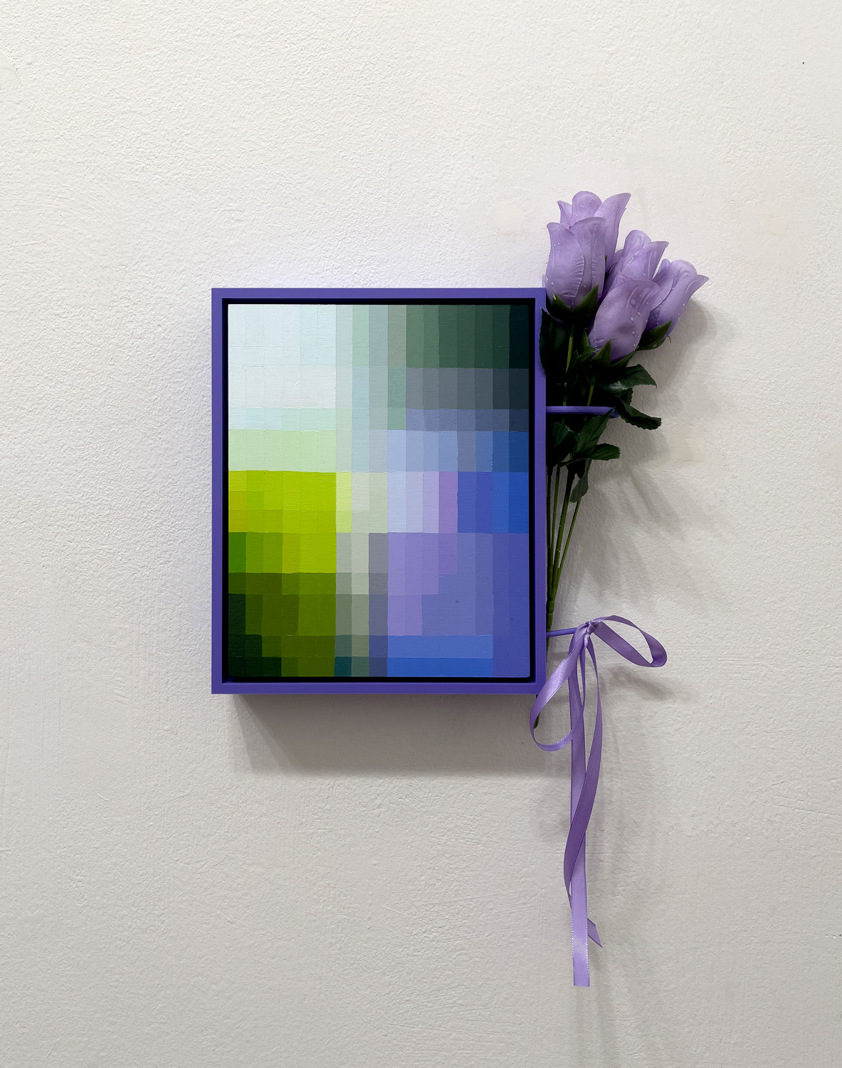 Acrylic on board, PLA thermoplastic, artificial flowers, ribbon, NFT 13 x 22 x 2inches | 33 x56 x 5.4cm |